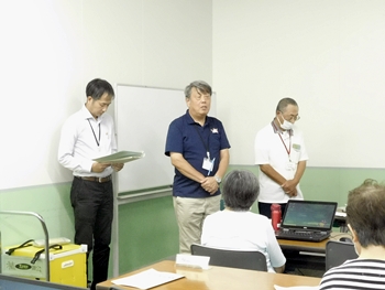 | 河村リーダー | 受講生は9名でした。 今回使用したパソコンと受講生のパソコンのバージョンが異なっていたこともあって、うまく説明できない箇所もありました。 また、テキストと若干異なる説明をしたところもあって、戸惑われたこともあったようです。 インターネットが利用できなかったので本来のスクリーンショットの操作がうまく説明できなかったのは残念でした。。 こういった教室を通して、パソコンの習熟を重ねて自分のものにしていただくことをお願い致します。 サポーターの方々には大変お世話になりました。 また、公民館の担当者様にもいろいろお世話になりました。 ありがとうございました。 |